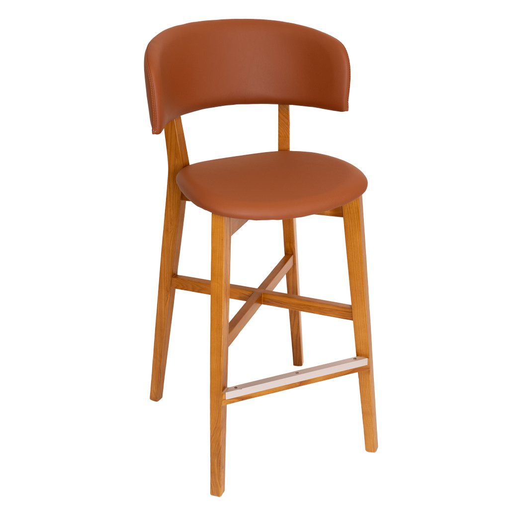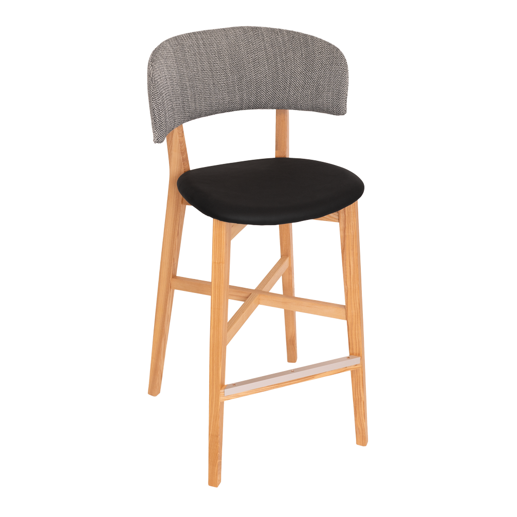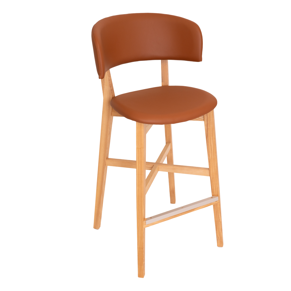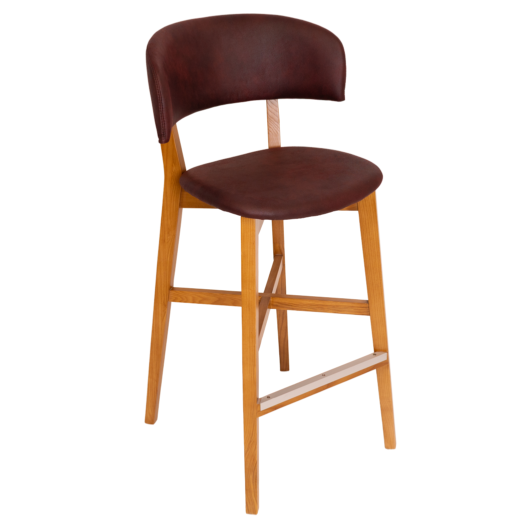 The Torino stool has American Oak timber frame with durable padded upholstery on the seat & back. Sturdy consruction with aluminium footrail protection made for commercial use.