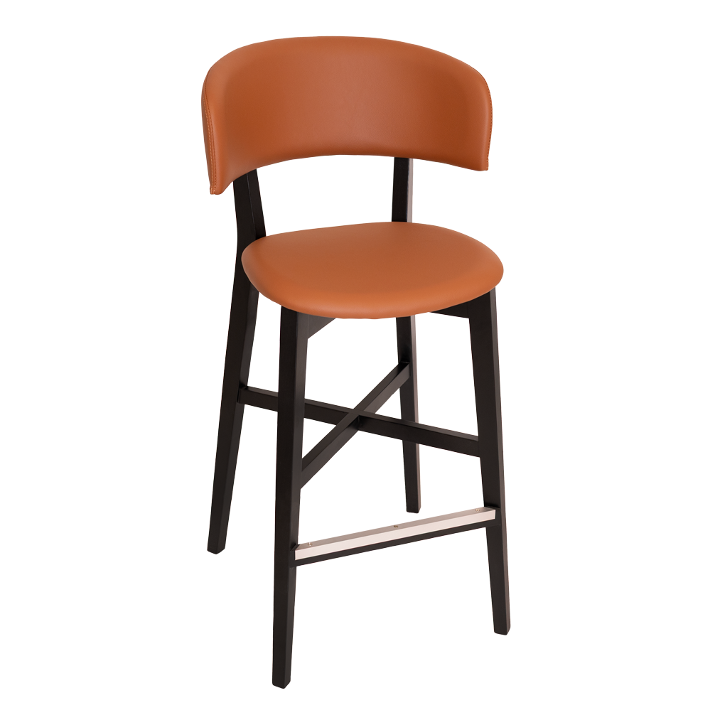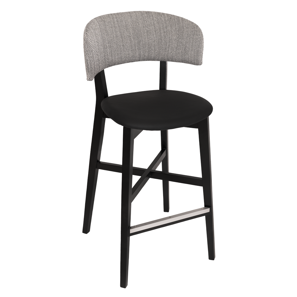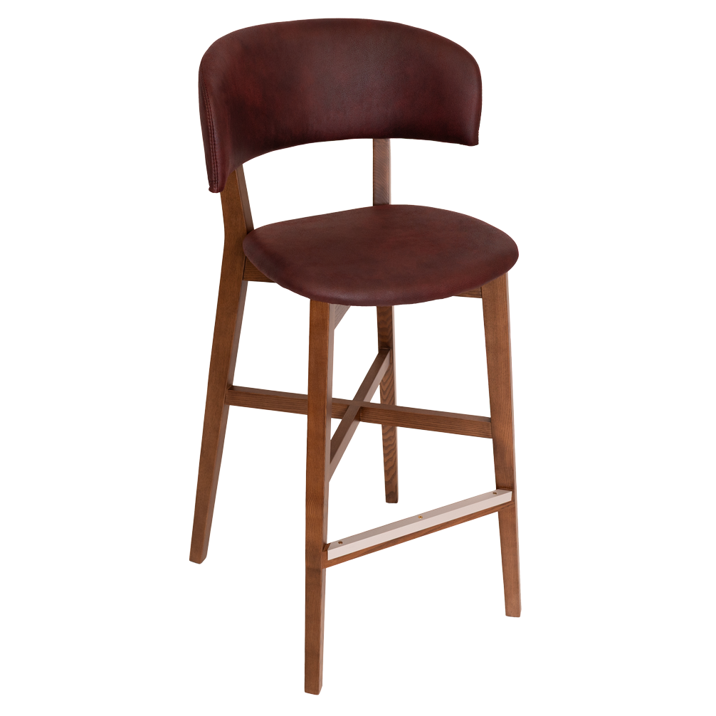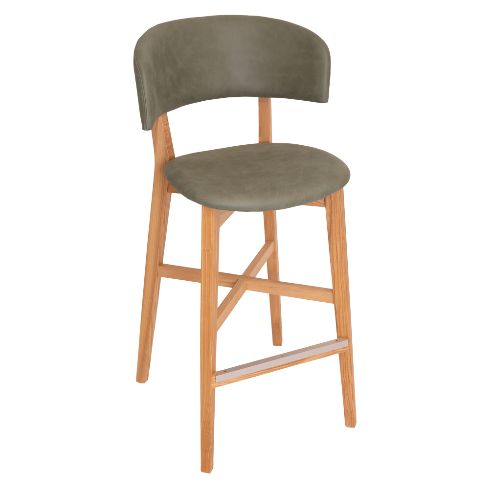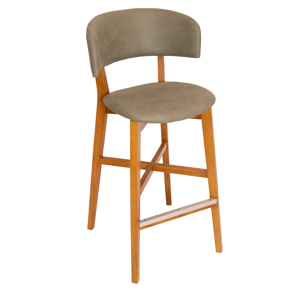 The Torino stool has American Oak timber frame with durable padded upholstery on the seat & back. Sturdy consruction with aluminium footrail protection made for commercial use.
