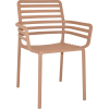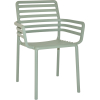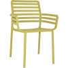 The DogaArm Chair is fresh, light and ergonomic, perfect?for outdoor use and made of fiberglass resin. It is inspired by a slatted design given a contemporary twist. It’s handy to move and stackable.